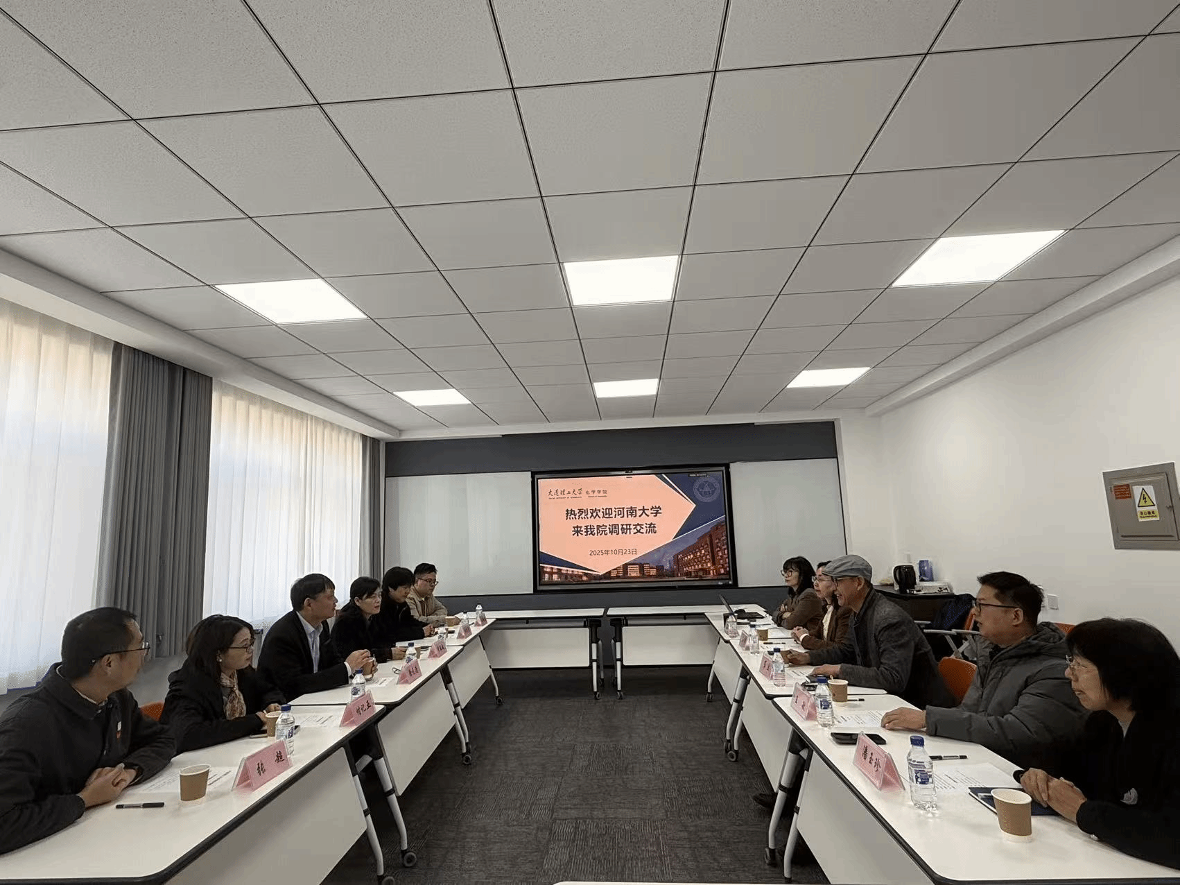 2025年10月23日,河南大学化学与分子科学学院执行院长徐元清率团来访我院,开展调研交流。随行人员包括学院教学负责人李亚敏、应用化学系主任付记亚、材料化学系主任任艳蓉、无机化学学位点负责人张超、实验教学中心负责人张鹏飞及相关教师。我院党委书记崔旦、副院长吴硕、副院长王敏、国家级基础化学实验中心副主任潘玉珍、综合办主任姜廷雪等参加座谈。会议由崔旦书记主持。