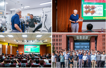 在此次学术交流活动中,大连理工大学化学学院史彦涛教授详细介绍了Grätzel教授在新型光伏领域的卓越贡献及学术成就,并对Grätzel教授的到来表示热烈的欢迎与由衷的感谢。在长达一个小时的精彩报告中,Grätzel教授系统梳理了钙钛矿太阳能电池自2009年问世以来的发展历程及革命性突破。Grätzel教授从早期的液态染料敏化体系到全固态钙钛矿的创新性革新谈起,深入分析了全固态空穴传输层的引入、氧化物电子传输层的优化对器件效率的显著提升,以及器件构型从正置向反置的迭代演进。在报告中,Grätzel教授还分享了其团队在钙钛矿材料与器件领域的最新研究成果。展望未来,Grätzel教授指出,通过多学科交叉协同创新,钙钛矿太阳能电池技术有望实现大规模的应用推广,为全球能源转型提供颠覆性的解决方案。