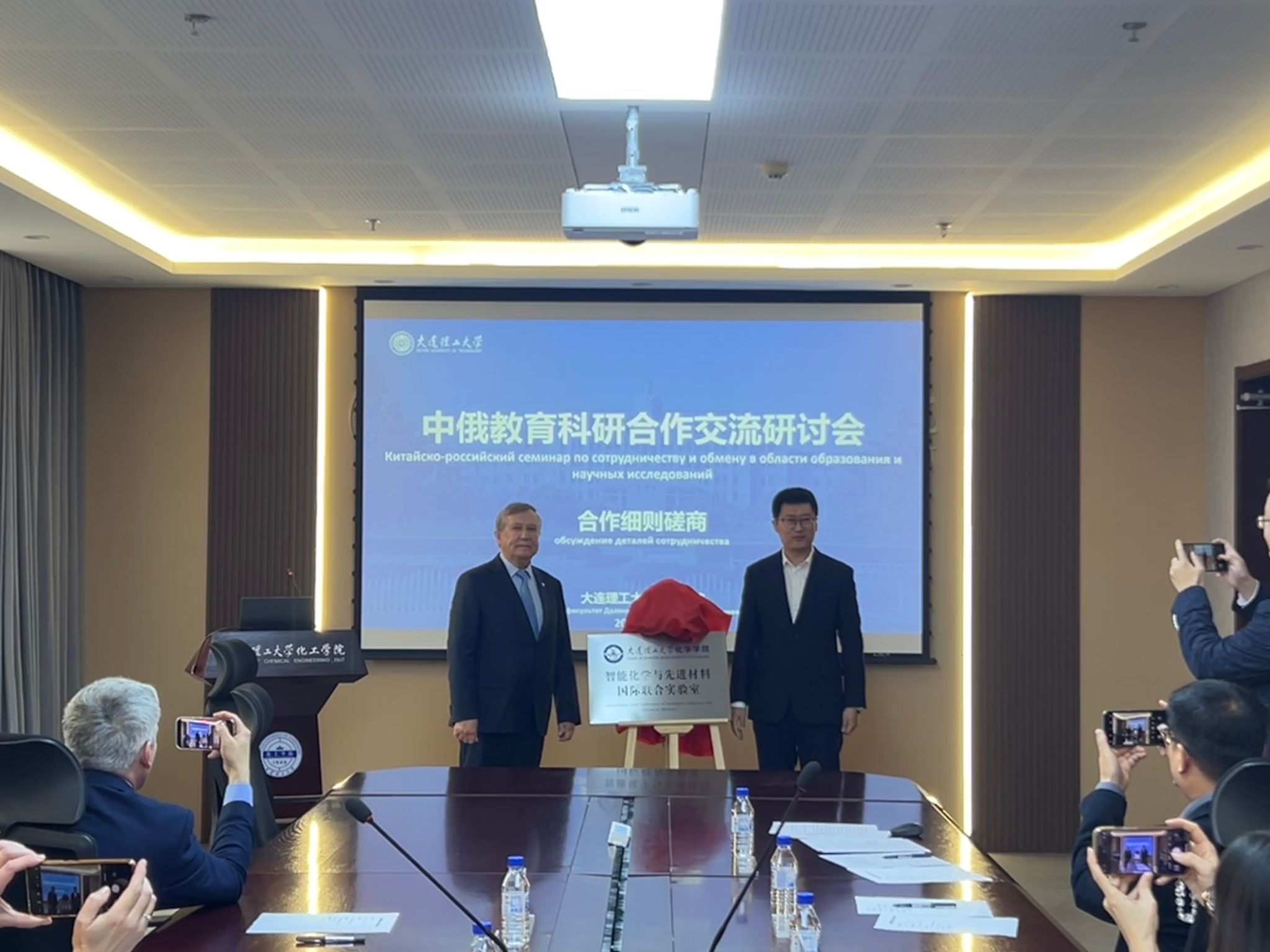 会议伊始,院长陶胜洋对菲金院士一行的再次到访表示热烈欢迎。在与会人员的共同见证下,双方隆重举行"智能化学与先进材料国际联合实验室"揭牌仪式,实验室的正式成立标志着双方合作进入新阶段。