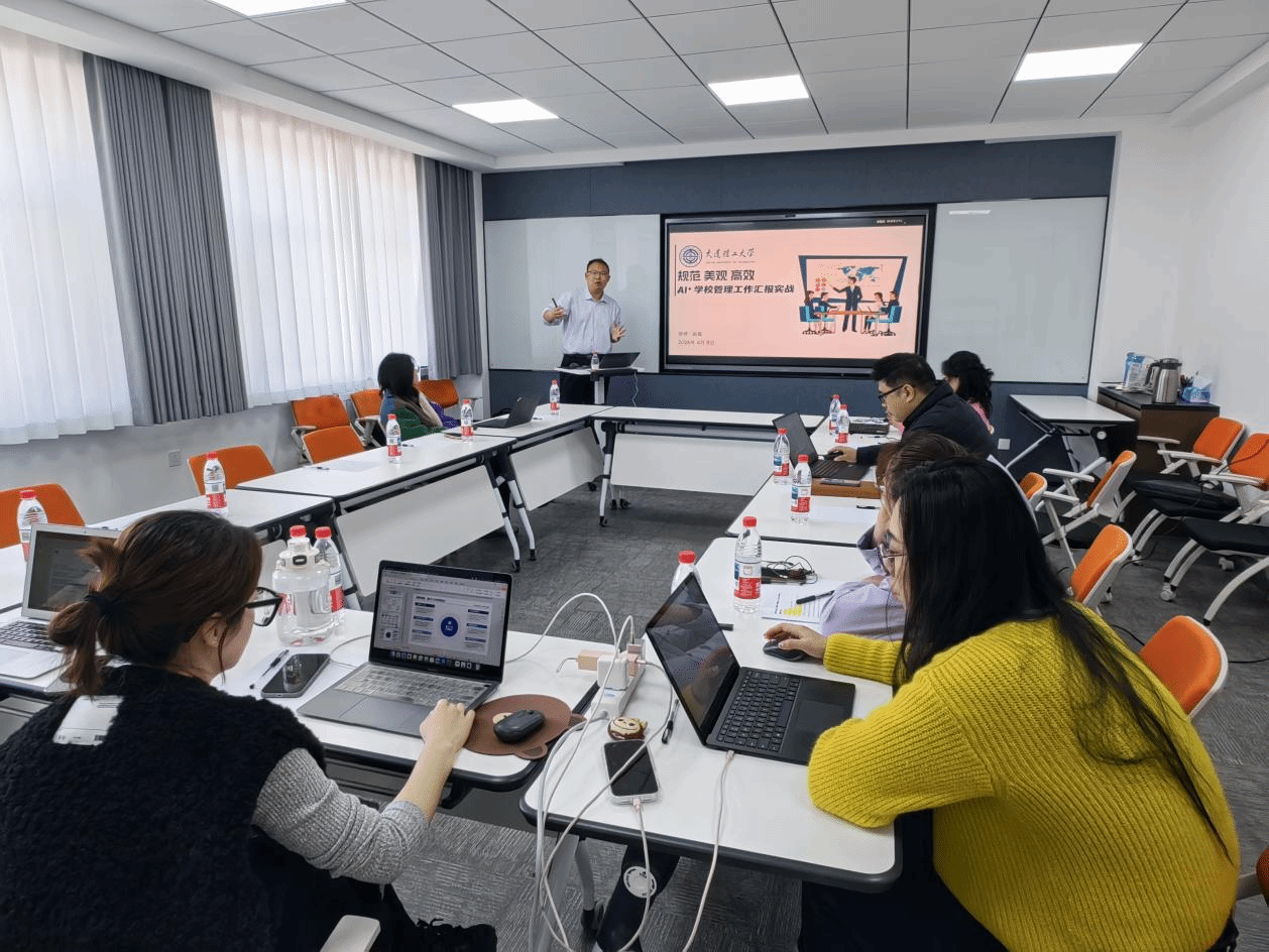 此次培训特邀国内首批企业级AI应用实战讲师、微软MOS国际认证大师级专家赵磊老师主讲。在上午三个小时的系统精讲与实战演练中,赵磊老师结合其服务海尔、国家电网等知名企事业单位的丰富经验,结合目前各种AI产品,深入讲解金字塔原理在PPT中的可视化落地,指导学员如何构建“结论先行、层级清晰”的汇报逻辑,确保管理工作的成效与亮点能够被高效传达。结合化学学科严谨、理性的学科特点,详细拆解了PPT的三大设计原则、配色理论及CARP排版法则,助力汇报材料在视觉呈现上实现质的飞跃。并针对学校管理工作中常见的复杂数据展示难题,赵老师现场演示了甘特图、双轴图等高级图表的制作技巧,并传授了母版批量管理等“一键美颜”技术,大幅提升制作效率。培训现场气氛热烈,参训人员携带日常工作案例,跟随讲师进行了实操演练,互动氛围热烈。