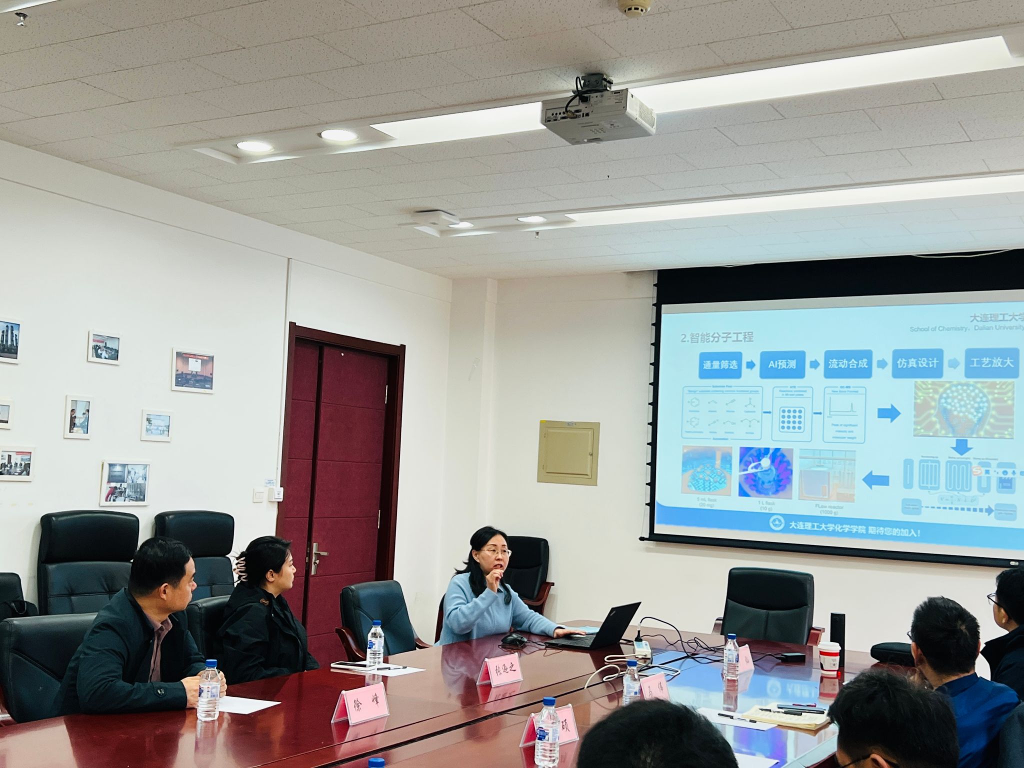 教授马伟基于化学学院水化学与水质功能材料专业技术创新中心的研究基础,介绍了水体化学污染物预警和监测、元素识别与净化功能材料以及水处理过程优化方面的原始创新设计制造的理念,针对国能水务环保科技南京有限公司提出的需求,在水体系特征离子、分子状态以及材料界面过程和在线监测、控制优化等方面进行了广泛交流。