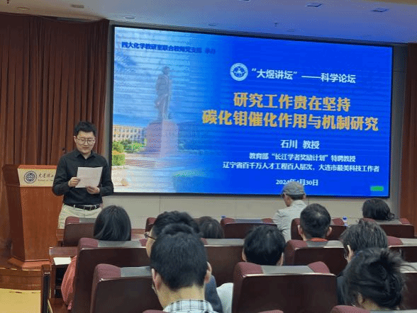 为进一步提高学院人才培养水平,营造积极向上的学术环境,激发学院广大师生科研创新热情。4月30日下午14:00石川教授担任化学学院第30期“大煜讲坛”科学论坛主讲人,在知化楼D102报告厅为化学学院师生带来了一场精彩的学术报告,主题为“研究工作贵在坚持:碳化钼催化作用与机制研究”。报告由化学学院院长陶胜洋教授主持。陶胜洋强调,石川教授通过回顾20年的科研经历,为学院师生分享科研心路历程、研究成果和工作经验,对师生今后研究工作的选题、发现、合作等方面具有重要的启发和指导意义。