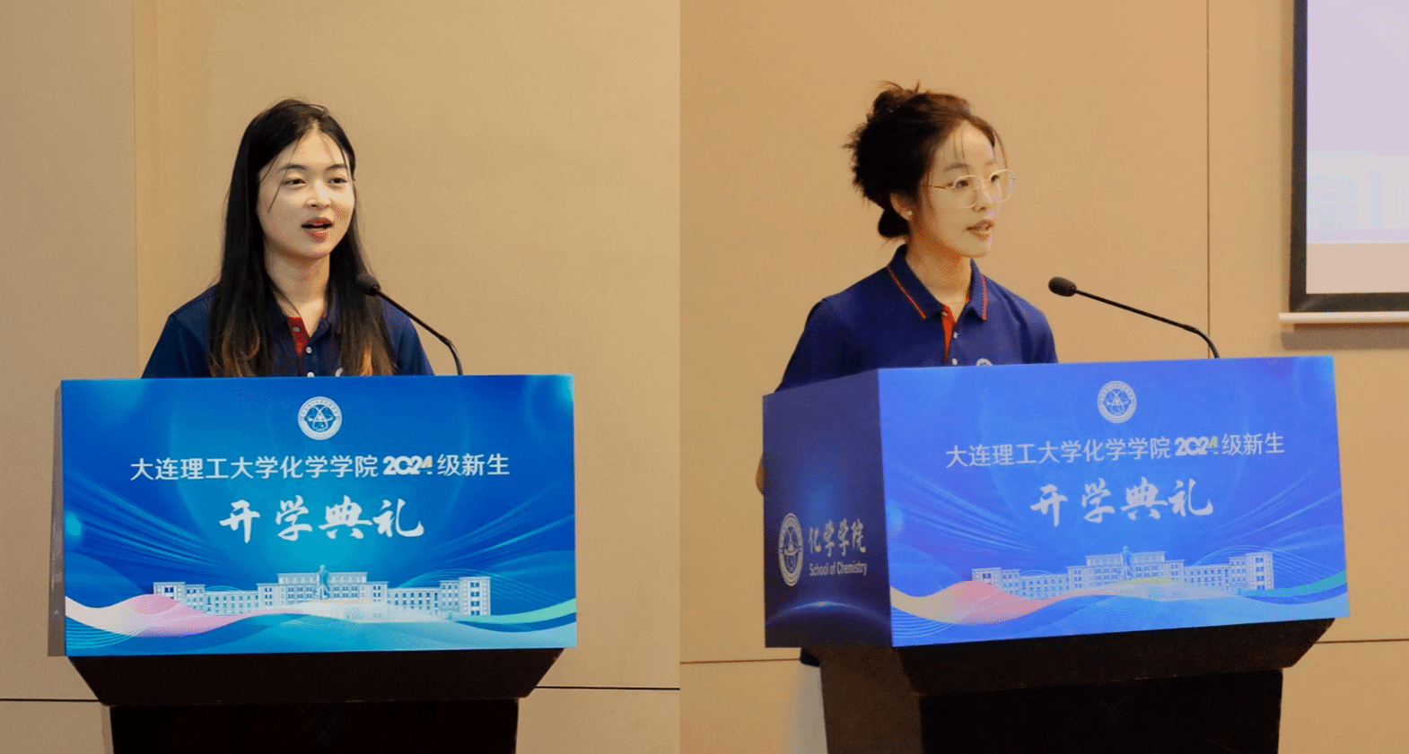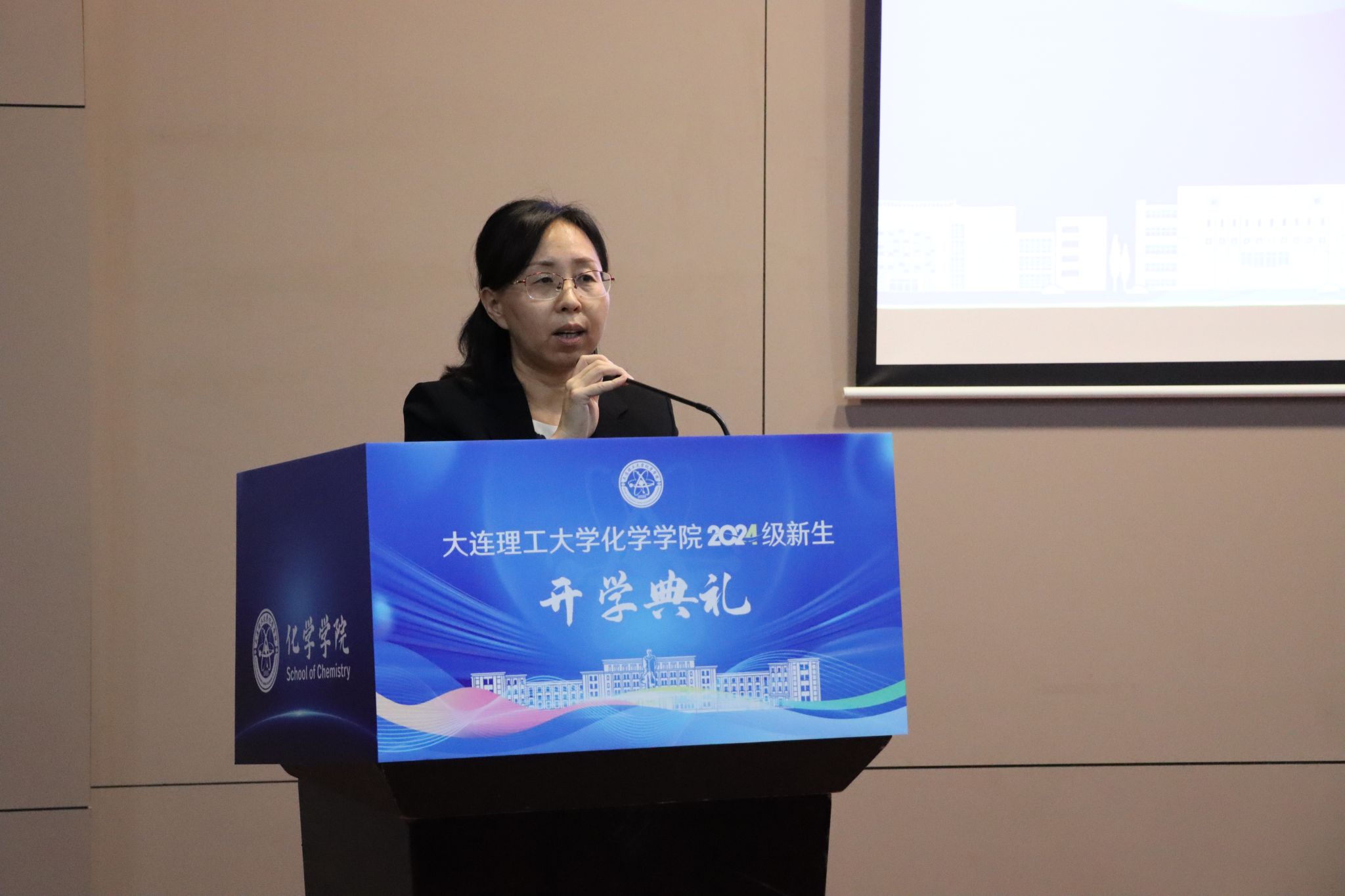 化学学院院长陶胜洋教授,党委书记崔旦老师,副院长吴硕教授,副书记副院长黎晓明老师,教师代表胡涛教授、姜文凤教授、纪敏教授、 史彦涛教授、张晓教授、王旭珍教授、王东琪教授、于丽梅副教授、宋波副教授出席典礼。学院机关老师、学办辅导员、在校生代表以及化学学院2024级全体硕博新生现场参加典礼。
