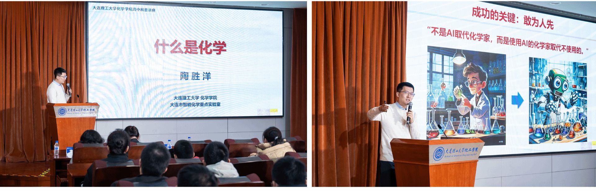 院长陶胜洋教授介绍了大连理工大学化学学科的发展历史,化学学院依托深厚的学科底蕴,近年来在学科升级改造方面取得了显著成效,逐步形成了以新科学范式为导向的学科体系。陶胜洋院长介绍了学院未来的学科方向布局和师资情况,学院拥有一支高水平的师资队伍,能够为学生提供优质的学术指导和科研支持。近年来,强基计划的培养成效显著,多名在校生获得国内外竞赛大奖,发表高水平论文。