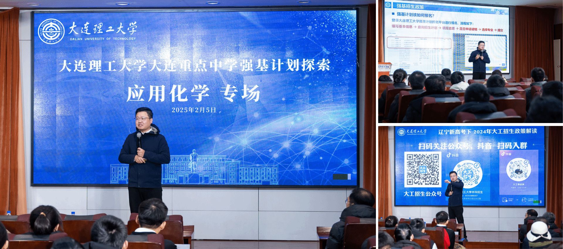 2025年2月5日,大连理工大学化学学院隆重举办2025年强基计划(应用化学专场)招生宣讲会。36名高三学生参加了线下宣讲会,并吸引了近3000名重点中学学生、家长及线上观众参与,共同深入了解强基计划的政策特色、培养成果及学科发展前景。宣讲会由学院党委副书记兼副院长黎晓明主持。