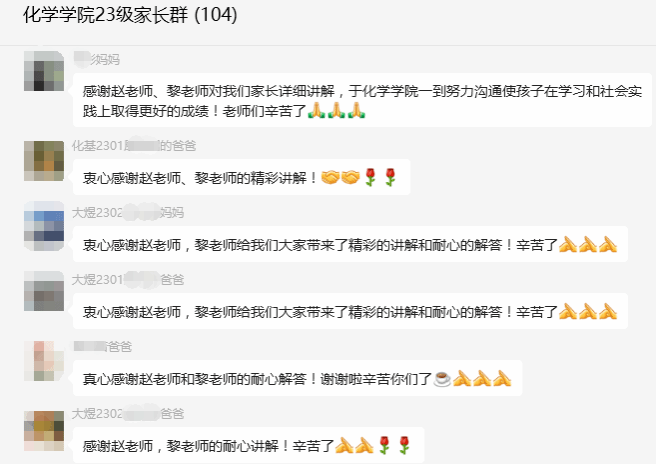 会议最后,结合家长关心的问题老师们进行答疑,也对到会的家长表示感谢,希望学生家长未来更加关注化学学院发展,注重家校联动,助力学院和学生共同成长,为已经到来的新学期保驾护航!