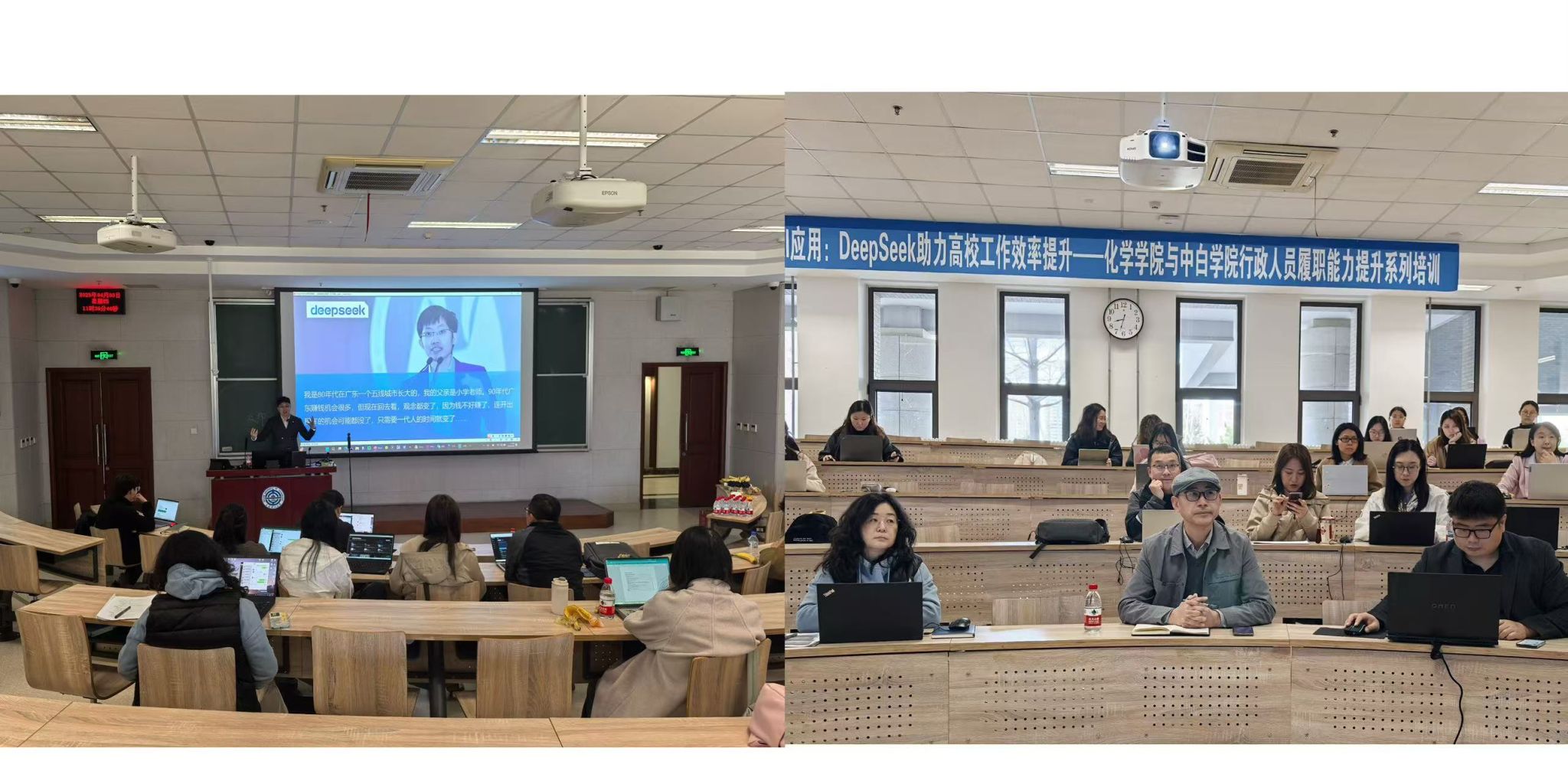 2024年4月3日,大连理工大学化学学院 “卓越行政”能力锻造成长营系列活动在管经大楼B111成功举行。本次活动以《AI应用:DeepSeek助力高校工作效率提升》为主题,旨在通过前沿技术的引入与实操演练,推动高校行政管理的现代化与智能化发展。活动还吸引了学院部分专任教师和研究生同学参与。