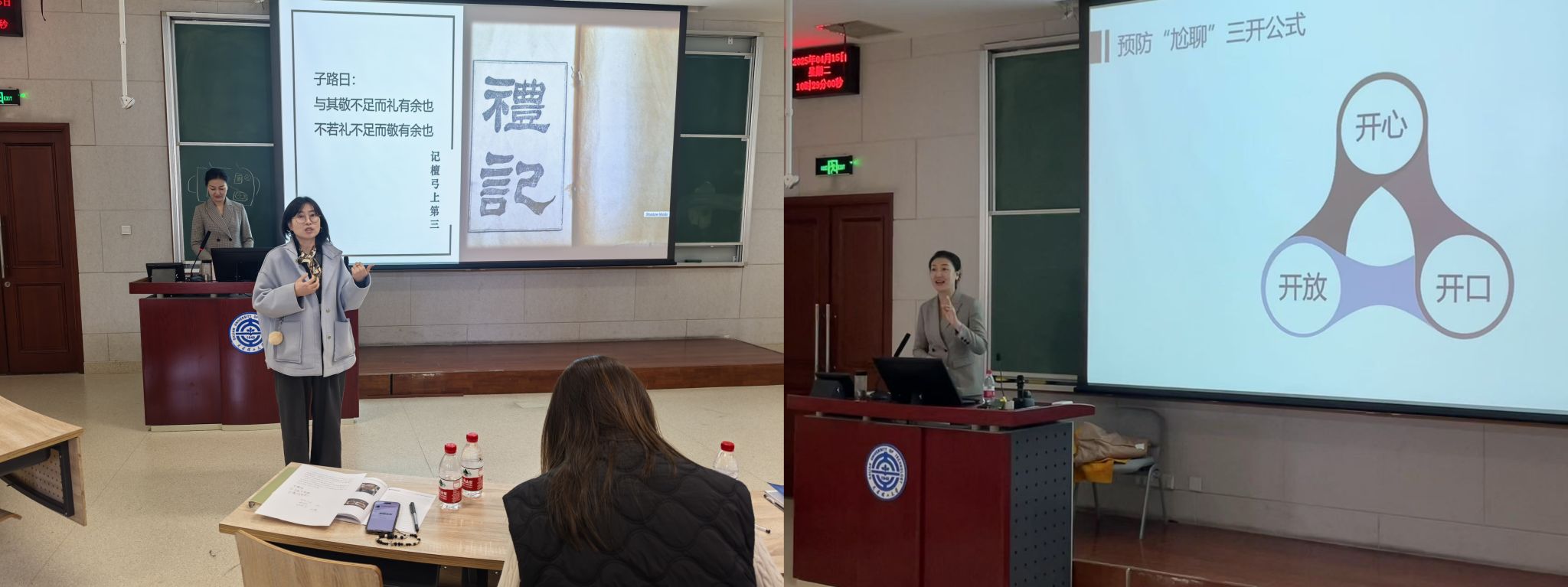 活动中,涂老师采用理论与案例相结合的生动模式,深入浅出地剖析了商务礼仪的核心逻辑。她从仪表仪态、场景化沟通等多维度展开讲解,将原本抽象的礼仪知识转化为通俗易懂且易于实践的内容。涂老师的丰富经验和实用技巧,为学院行政人员今后的工作提供了有力抓手,有助于提升工作效率,更好地服务师生,推动对外交流工作高效开展。
