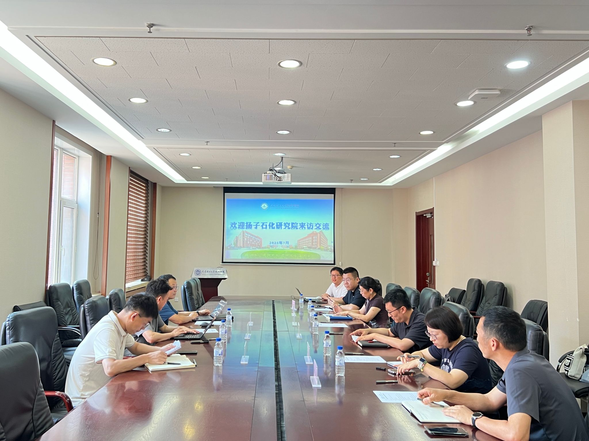 为加强校企合作,推动产学研深度融合,服务国家能源化工产业高质量发展,2025年7月4日上午,扬子石化研究院副院长孙海龙一行来访大连理工大学化学学院。扬子石化研究院副院长孙海龙、有机所副所长刘宗健、有机所副所长王彩杰,化学学院院长陶胜洋教授、副院长王敏教授、纪敏教授、时磊教授、院长助理金云鹤副教授、陈冰冰副教授等出席会议。