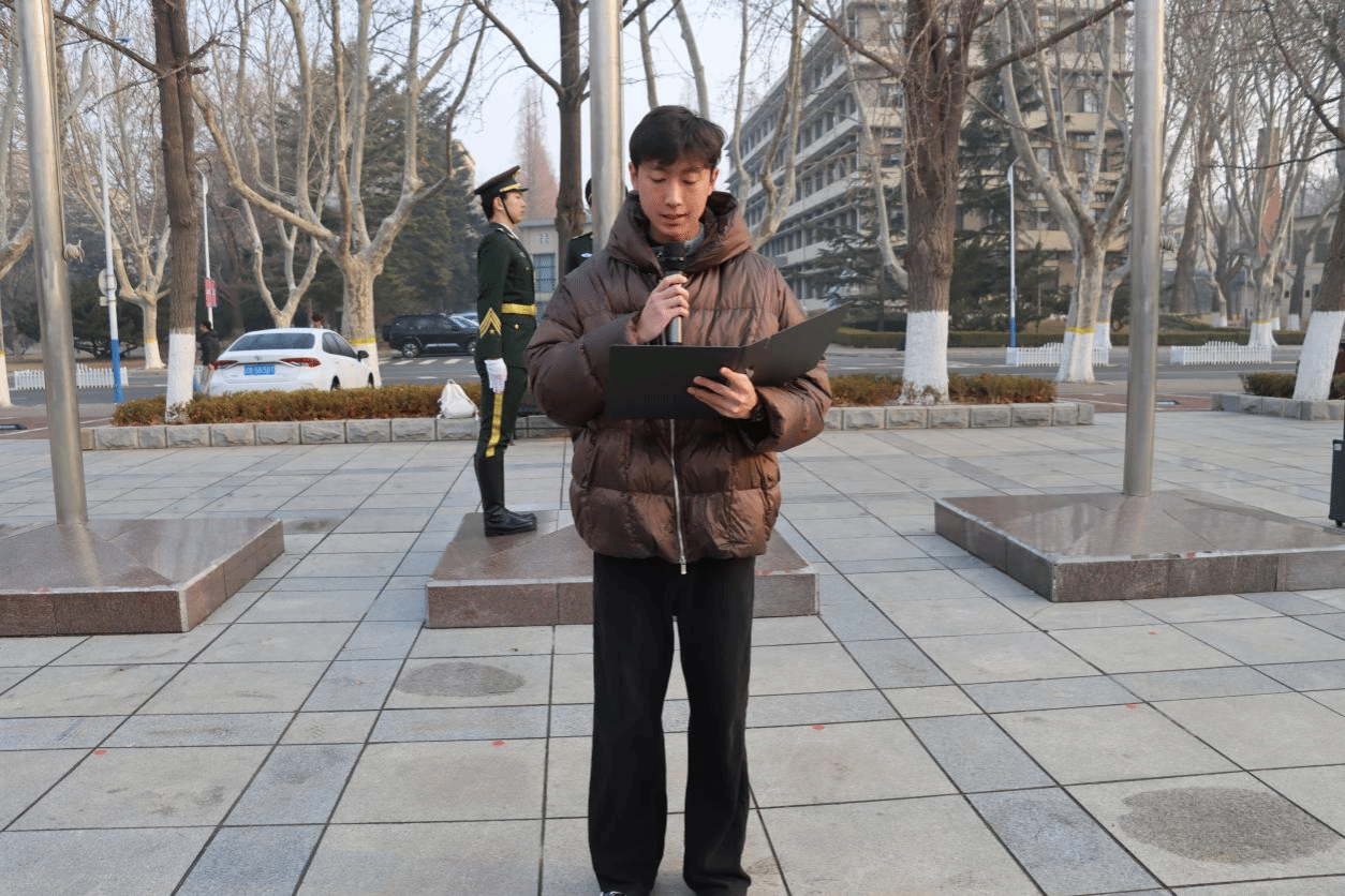升旗仪式结束后,化学学院团委书记王思尧老师发表讲话。他从世界气象日的由来讲起,强调气象科学在防灾减灾、工程建设、生态保护中的重要作用。他指出,观云识天既是古人总结的生活智慧,更是当代人探索气象科学的入门钥匙;守护蔚蓝不仅需要科学认知,更需要实际行动。他结合两学院专业特色,阐述了气象科学与建设工程、大气化学的学科关联,鼓励同学们将专业知识与气象科普相结合,在学以致用中锤炼本领,在知行合一中践行初心。他号召全体师生以世界气象日为契机,树立“早预警、早行动”的防灾意识,践行“绿水青山就是金山银山”的生态理念,让观云识天的科学精神和守护蔚蓝的责任意识在校园落地生根。