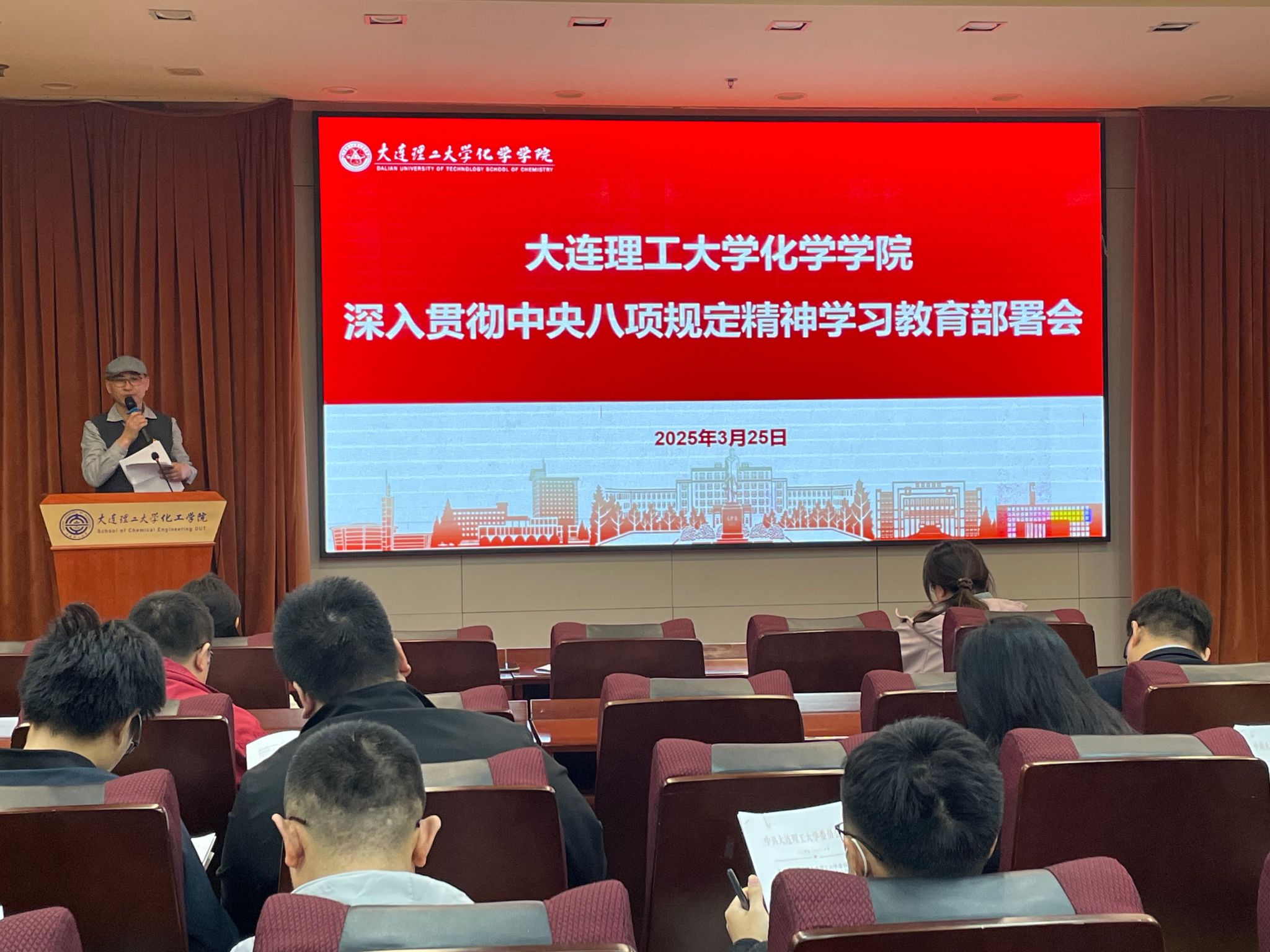 化学学院党委于3月25日召开党委理论学习中心组学习会议暨深入贯彻中央八项规定精神学习教育部署会,学院领导班子成员、党委委员和全体党支部书记参加会议,会议由学院党委书记崔旦主持。