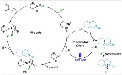 初步机理实验证实镍氢化物物种的干预,证明了在该条件下,是自由基-自由基偶联的机理,而非烯丙基-Ni物种对亚胺阳离子的加成。