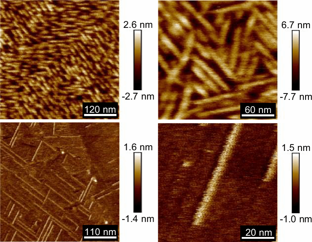 图4. 在不同放大倍数下tri-BCP薄膜表面的AFM图像