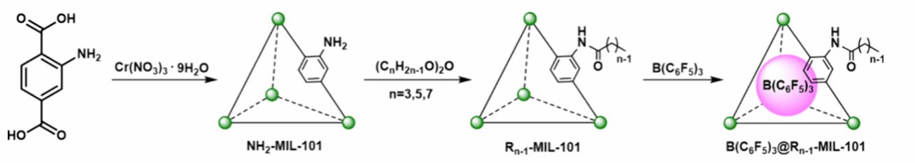 图2. B(C6F5)3@Rn-1-MIL-101设计合成示意图
